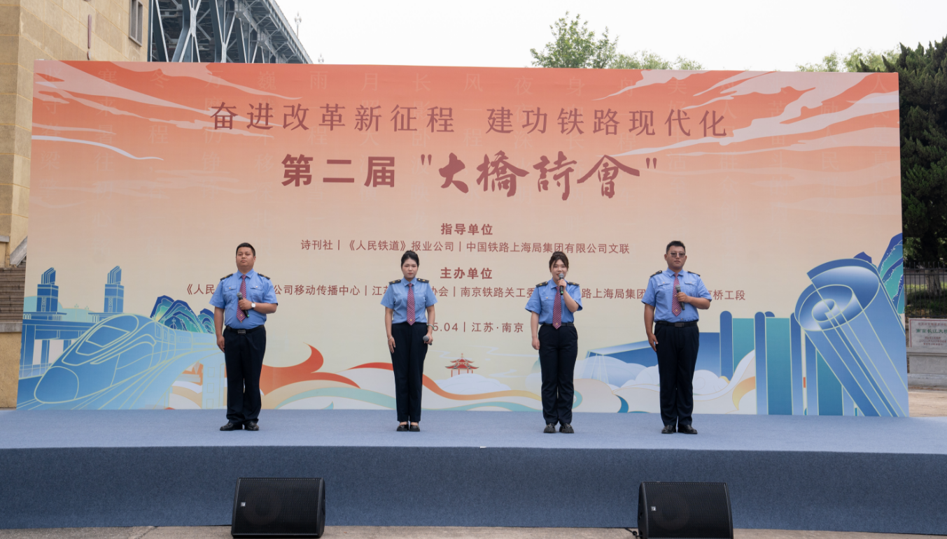 江水悠悠,诗韵长流。活动中,江苏省朗诵协会为南京长江大桥陈列馆授牌 “大桥诗会” 朗诵基地,以文化阵地建设厚植精神传承根基,点亮铁路文脉传承之光。“从‘用脊梁顶起钢梁’的历史担当到‘匠心守护银龙 ’的时代使命,诗会不仅是向铁路人的精神谱系致敬,更是以文化自信自强为民族复兴注入强大精神力量的生动注脚。”全国铁路劳动模范、中国铁路上海局集团有限公司南京桥工段工会副主席朱素华深情述说。