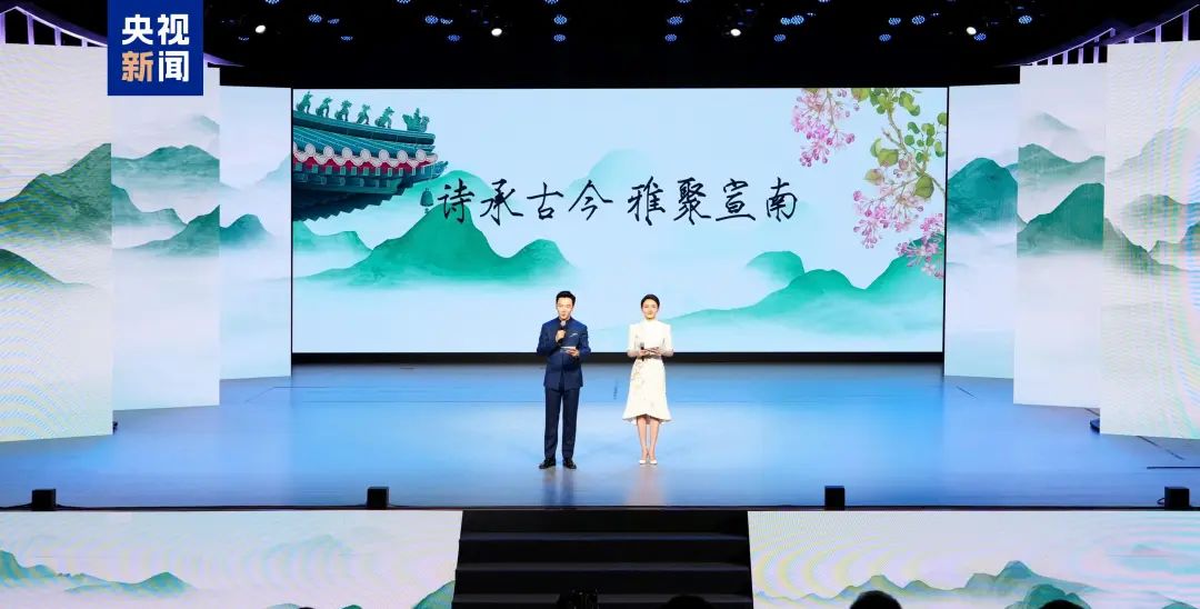 诗会突出“传统文化的年轻态表达”,创新采用青年人喜闻乐见的“乐•舞•诗”融合艺术形式,焕新打造充满“年轻力”的诗歌盛会。活动现场,朗诵表演艺术家陈铎,《哪吒之魔童闹海》配音演员吕艳婷,演员陈数、于适等与高校学子、中小学生共同演绎了中外诗歌经典作品。借助AI技术,导赏官张光北、李光复、郦波与历代诗人展开穿越时空的对话,共同感受诗脉绵延、生生不息。