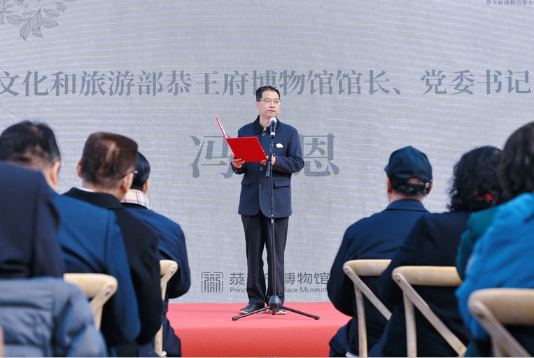 伴随着国家级非物质文化遗产项目(古琴艺术)代表性传承人吴钊先生的琴曲《欸乃》,活动拉开帷幕。文化和旅游部恭王府博物馆馆长、党委书记冯乃恩,中华诗词学会常务副会长林峰先后致辞。冯乃恩提出“在保持中华优秀传统文化核心特质的基础上,积极借鉴其他文化活动在组织形式、传播方式等方面的优秀经验,通过多元互动,促进文化艺术的交流互鉴,为中华优秀传统文化创造性转化创新性发展提供实践参考”。林峰在致辞中提到“抗日战争时期,恭王府虽历经如磐风雨,但其承载的文化精神始终没有颓废”。