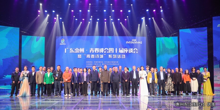 1月13日晚,青春诗会四十届座谈会暨“青春诗城”系列活动之“永远的青春”诗歌朗诵会举行,吉狄马加、王山、杨克等参会诗人现场吟诵自己创作的青春诗篇,惠州本地专业主持人、朗诵家也共同参与朗诵“青春诗会”走出的著名诗人的经典名篇。朗诵会辅以音乐等形式,融合新媒体技术,呈现出诗乐相配的精彩画面,给观众带来无尽的审美愉悦和心灵震撼。