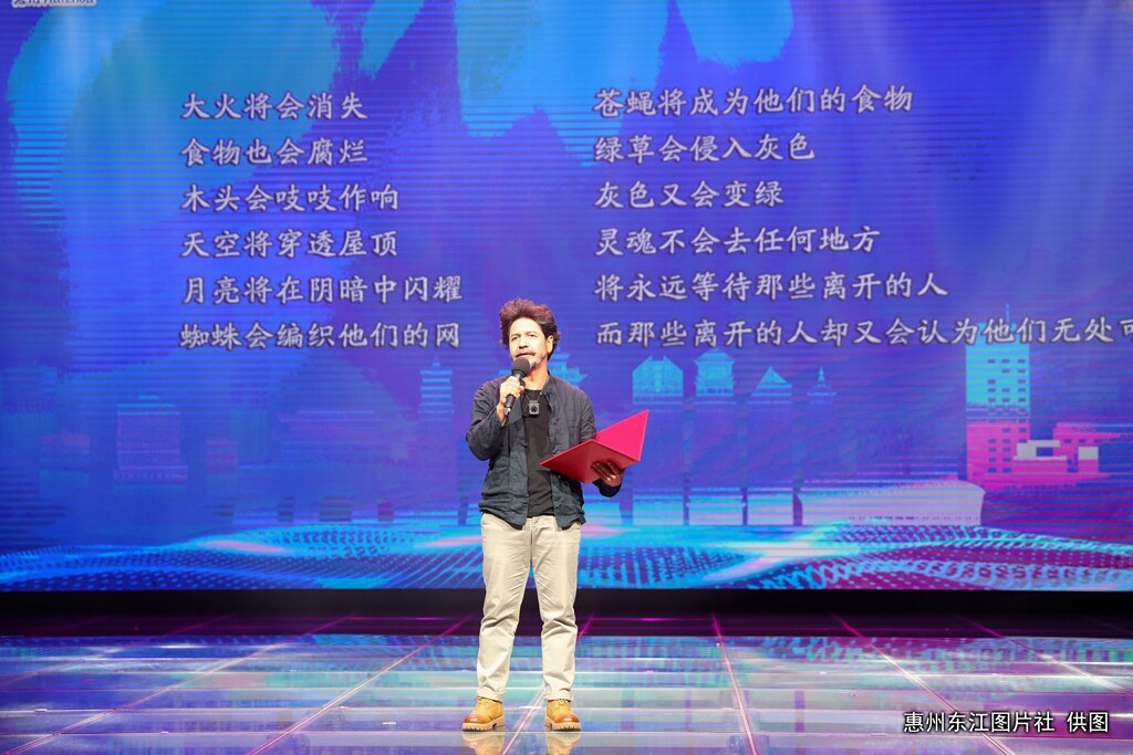 惠州诗人、 第六届“青春诗会”代表阿吾现场朗诵了他20多年前于惠州创作的《我们一家都生在河边》。“参加青春诗会对我来说是很好的学习机会,这次朗诵会勾起了我无尽的回忆。”阿吾说,他前后在惠州居住了30年,创作了约1000首诗歌,这次在惠州吟诵自己的作品,感触颇深,“诗歌是情感的流淌,有些诗歌通俗易懂,有的可能很深奥,但都有其神秘之处。”