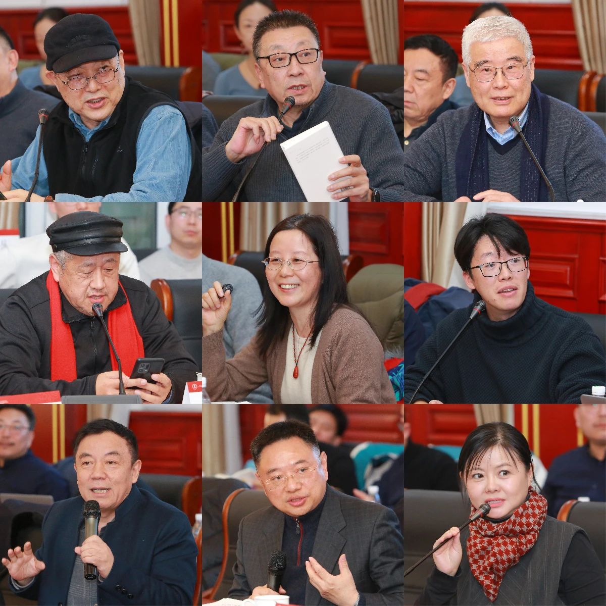 王必胜、陈福民、孙郁、孔庆东、陈汉萍、陈思、王干、刘汉俊、崔曼莉(从左至右,从上至下)