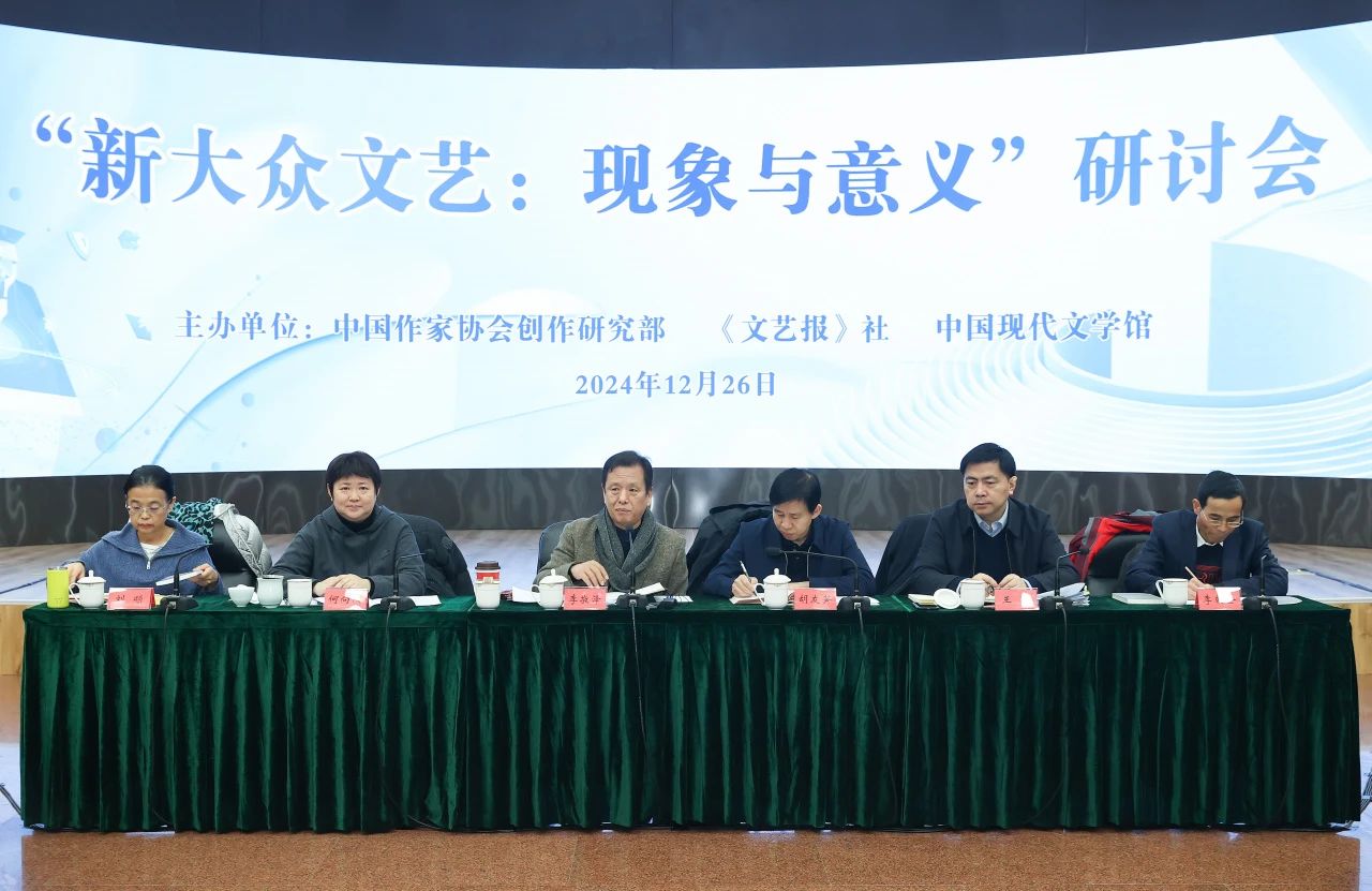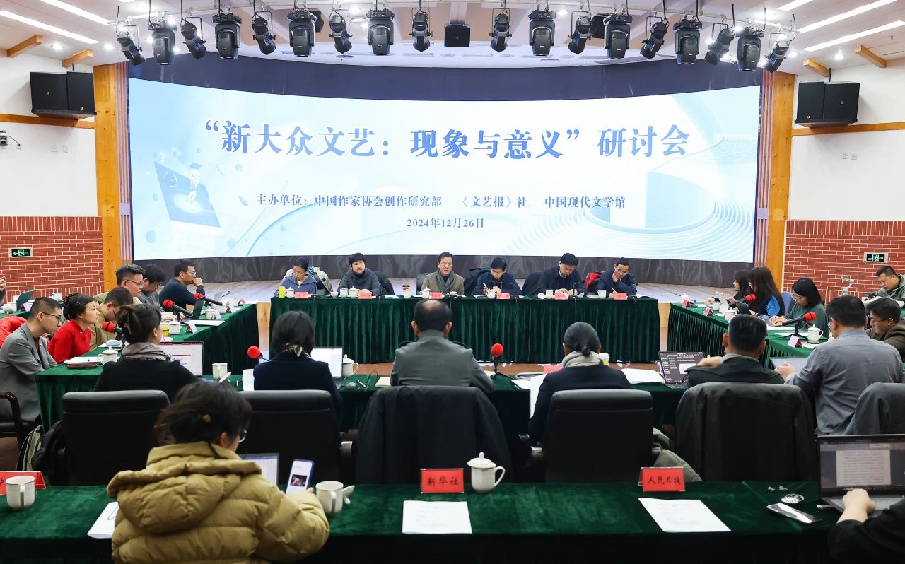 12月26日,由中国作协创研部、文艺报社、中国现代文学馆共同主办的“新大众文艺:现象与意义”研讨会在京举行。中国作协党组成员、副主席、书记处书记李敬泽出席并主持会议。中宣部文艺局副局长胡友笋,中国作协创研部主任何向阳,中国现代文学馆常务副馆长王军,《文艺报》副总编辑刘颋,中国作协创研部副主任李朝全、纳杨,中国现代文学馆副馆长李宏伟,以及贺桂梅、阎安、周志强、刘琼、刘大先、赵晖、丛治辰、孙佳山、胡妍妍、白惠元、汤俏、秦兰珺、杨宸、杨毅等专家学者与会研讨。