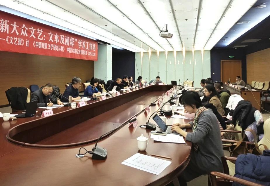 当天下午还举行了由文艺报社、《中国现代文学研究丛刊》、中国作协创研部共同主办的“新大众文艺:文本及阐释”学术工作坊,《文艺报》副总编辑岳雯,《中国现代文学研究丛刊》执行主编李蔚超,以及胡一峰、张萌、单小曦、胡疆锋、许苗苗、李星文、董阳、刘梦霏、陈亦水、张学谦、王玉玊、姚利芬、耿弘明、王雨童、危明星等专家学者参加工作坊,围绕会议主题进行交流探讨。