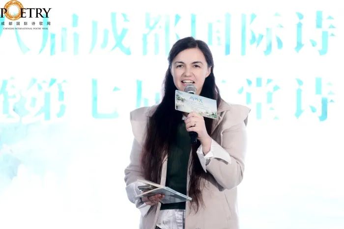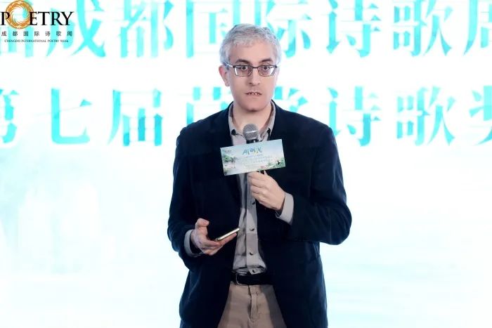 获奖诗人们上台领奖,在获奖感言中,表达了对伟大诗人杜甫的致敬,和对诗歌写作的满腔赤诚,以及对成都国际诗歌周的致敬、对草堂诗歌奖的感谢。他们动情朗诵自己的作品,感染了现场的中外诗人。在自由朗诵环节,来自世界各地的诗人纷纷上台,用不同的语种分享自己的佳作,一时间将现场气氛引向高潮,让重玄书院充满了诗的热情与浪漫。