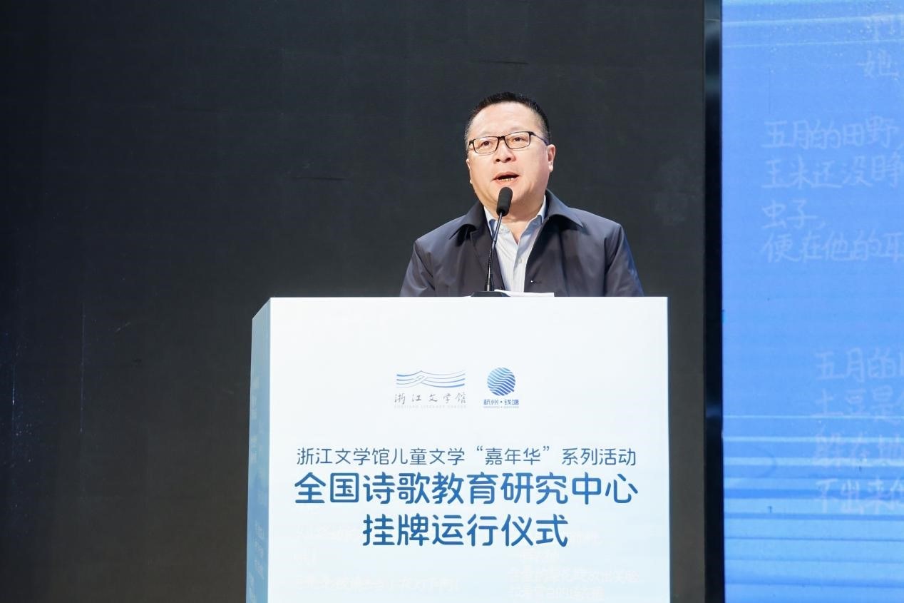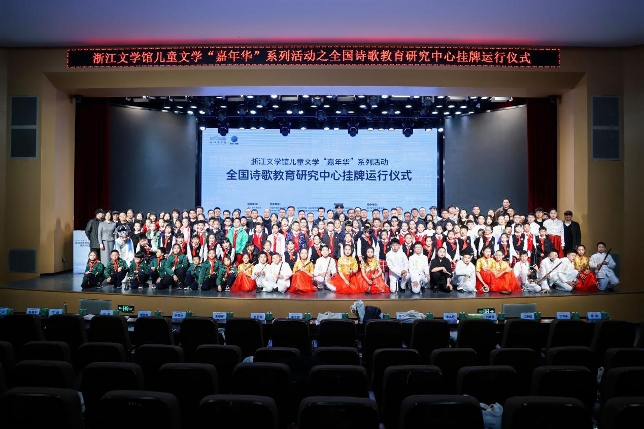 11月30日上午,浙江文学馆儿童文学“嘉年华”系列活动全国诗歌教育研究中心挂牌运行仪式,于杭州市钱塘区文思小学举办。