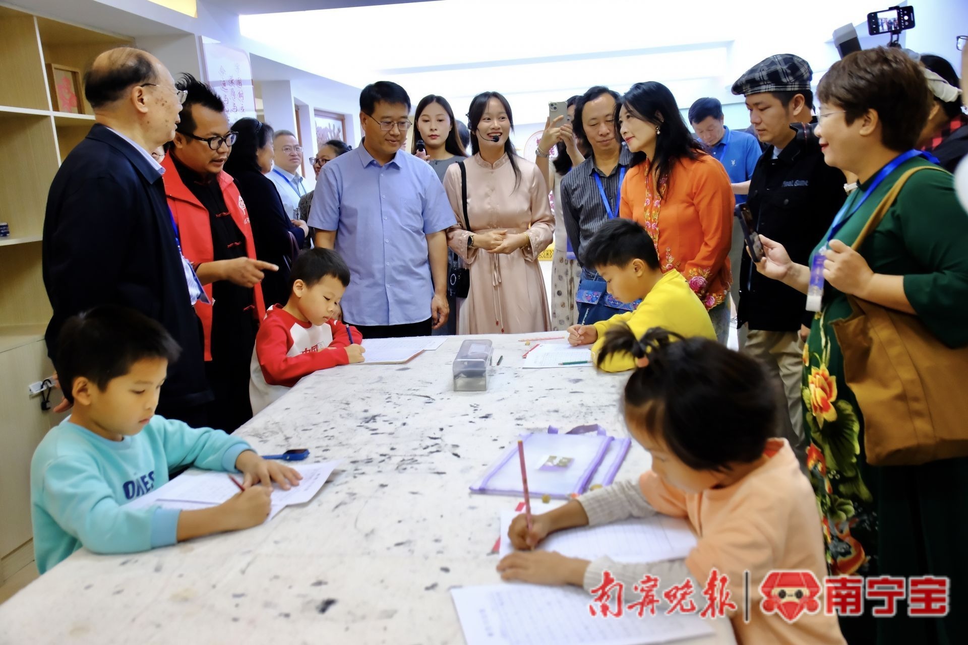 孩子们一笔一画的认真劲吸引了诗人们的关注