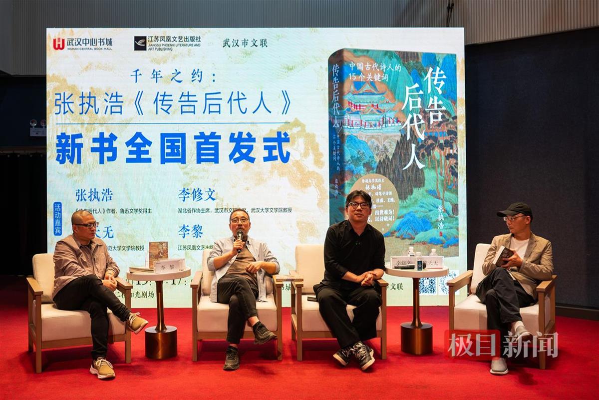 当日,出席新书首发式的湖北省作协主席、武汉市文联主席、武汉大学教授李修文,评价《传告后代人》这本书写得非常“中正”与“公正”。他说,张执浩所写的对于古代诗人的生命的感受,他也有同感,比如,他们都认为“乐府诗”非常了不起,里头收录了那么多的无名氏诗歌,对应的就是现在的普通人。比如,才华横溢的清代诗人龚自珍,在面对小说的出现,面对现代叙事的挑战时,成了一个被即将到来的全新的时代压垮了的人。“只有深入到诗人的命运中,写作才能带来真正的公正与慈悲。当深入到一个人的生活,体会到他的不容易,会觉得每一个人都特别可爱。”
