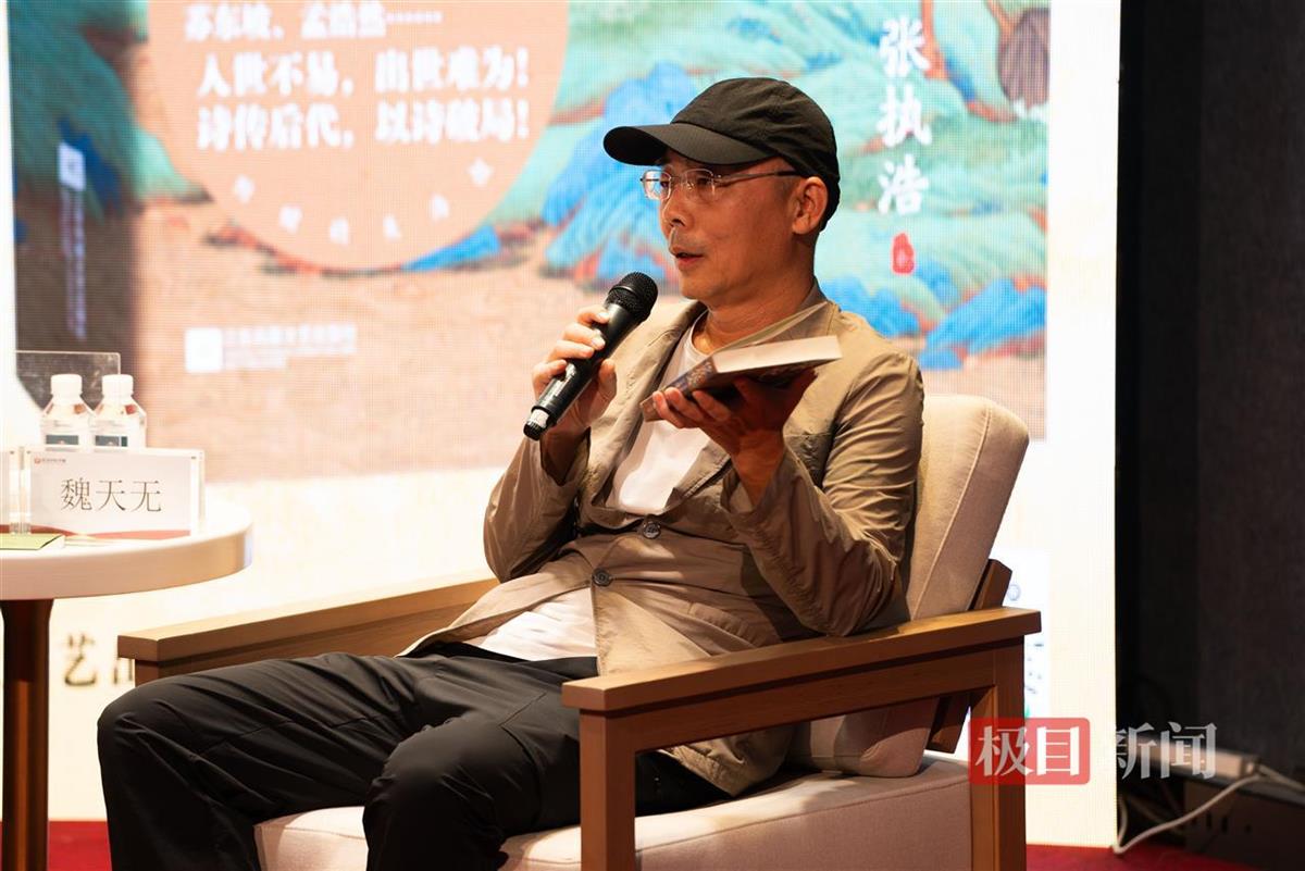 当被在场的记者问到:“写完《不如读诗》《传告后代人》两本书,读了那么多的古典诗歌,会不会继续这方面的创作,甚至写一些古体诗?”张执浩肯定地回答说,写完这两本书,在这一领域的写作就告一段落了。写这些诗人,是为了进入他们的生命,安顿自己的生活和写作,并不是为了做古典诗词研究或者创作。“就像清代龚自珍面对《红楼梦》的时代,怎么也回不到唐诗的辉煌。虽然现在写作格律诗的群体,依然庞大,作为个人爱好是可以的,如果是作家作为写作目标,是没有未来的。”他透露,自己接下来,会创作一部与黄鹤楼有关的“诗剧”,“这是我晚年的雄心壮志。”张执浩说。