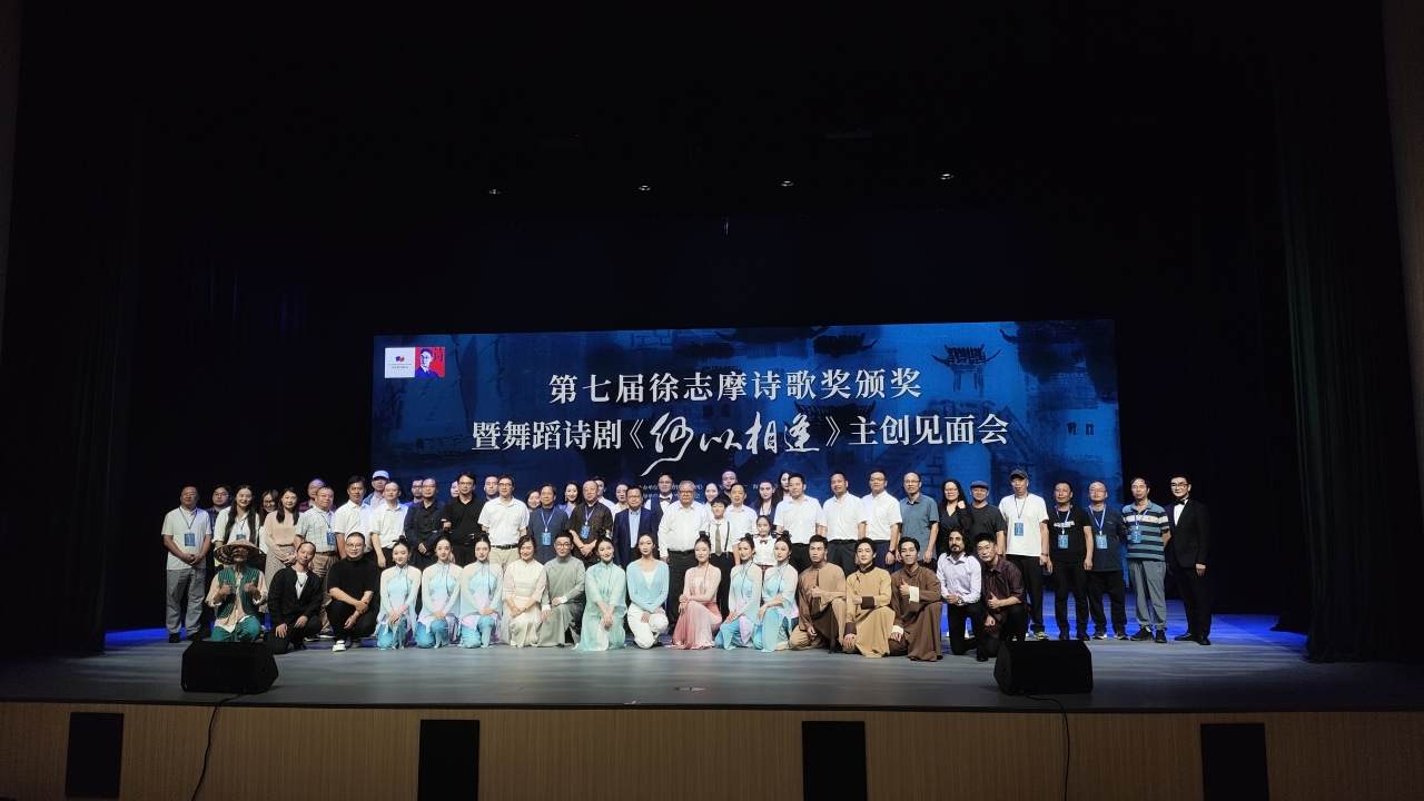“何以啊~~相逢~”伴随着北京歌剧舞剧院首席独唱演员平静悠扬婉转的歌声,昨天,第七届徐志摩诗歌奖颁奖暨舞蹈诗剧《何以相逢》主创见面会在海宁市志摩故里新月剧场拉开了帷幕。三百余名诗人、诗歌爱好者齐聚一堂,共赴这场诗歌盛宴,在海宁这座诗歌之城共同唱响诗意华章。