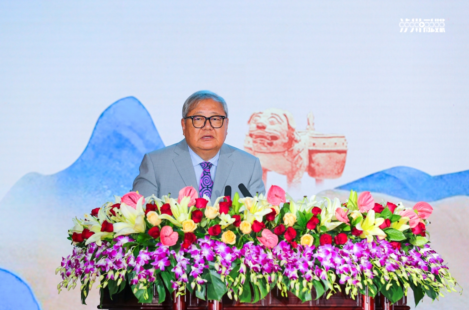 吉狄马加致辞,并宣布国际诗酒文化大会第八届中国酒城·泸州老窖文化艺术周开幕。