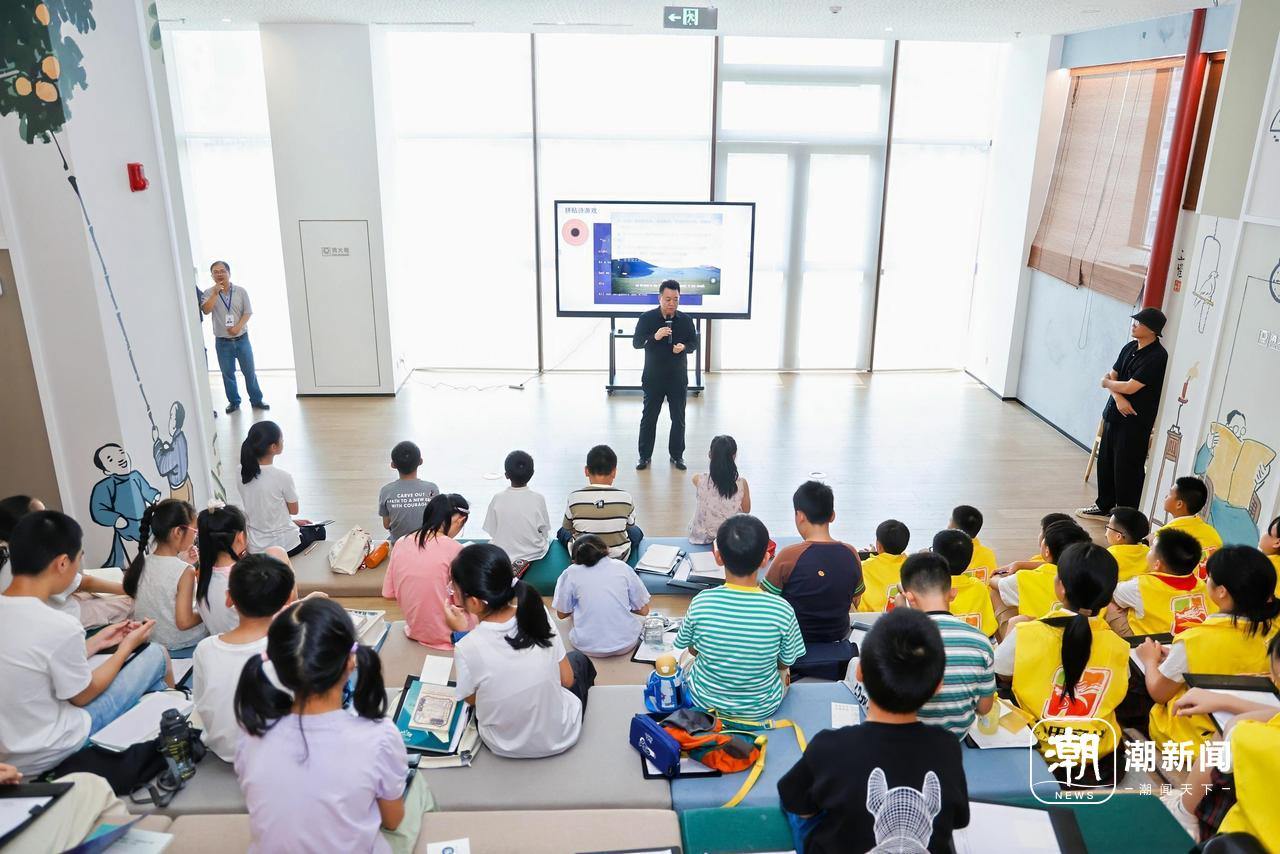 参观浙江文学馆过程中,四楼“儿童文学空间”正在进行一堂“诗教课堂”,该课堂是浙江文学馆“诗教计划”的内容。诗人们看到,青年诗人林宗龙在给孩子们上课,带领大家通过“拼贴诗游戏”感受诗的语言的魅力。