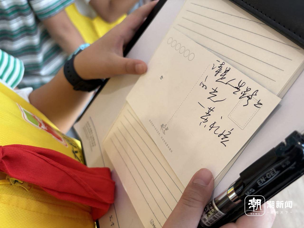 诗人黄礼孩给孩子的明信片签名。宋浩摄