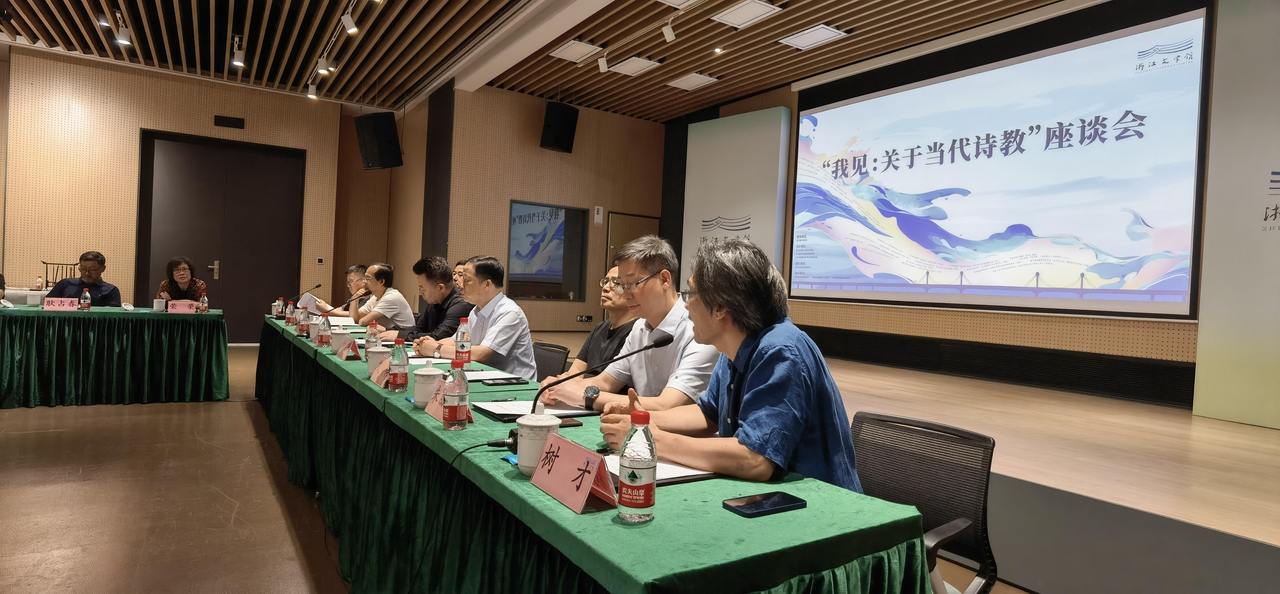 “我见:关于当代诗教”座谈会由树才主持。浙江文学院院长程士庆介绍了浙江文学院(浙江文学馆)联手钱塘区作协推动“诗教计划”的有关情况。