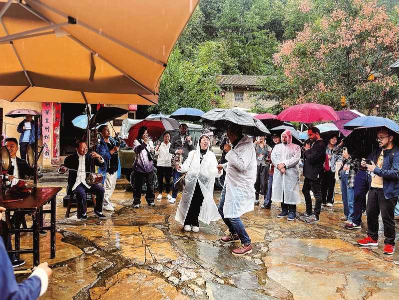 在国家级非遗“洛南静板书”小剧场前,拉美诗人跟着婉转绵长的旋律起舞