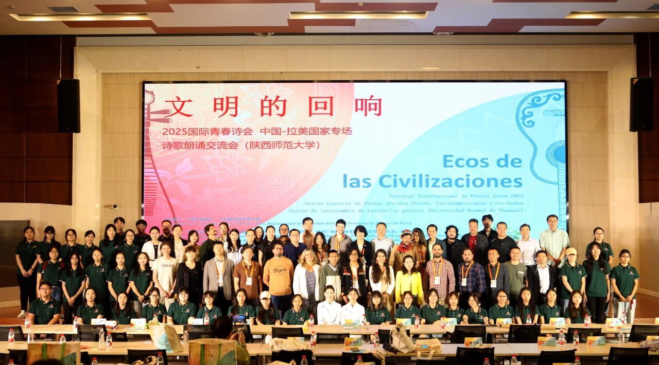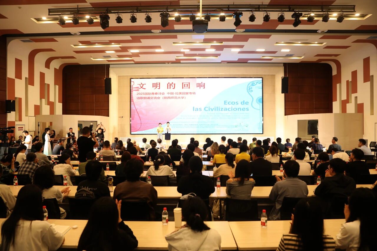 9月16日,参加2025国际青春诗会(中国—拉美国家专场)的15位拉美诗人与13位中国青年诗人一同来到陕西师范大学,举行了一场古典与现代交融的诗歌朗诵交流会。