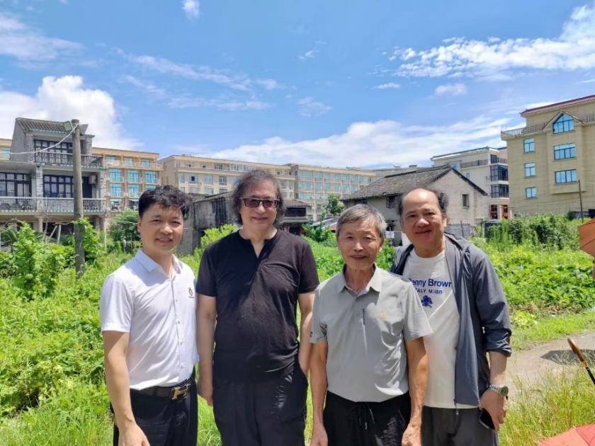 左起:吴光年(吴汶孙子)、诗人南野、吴前骖(吴汶小儿子)、翻译家海岸合影