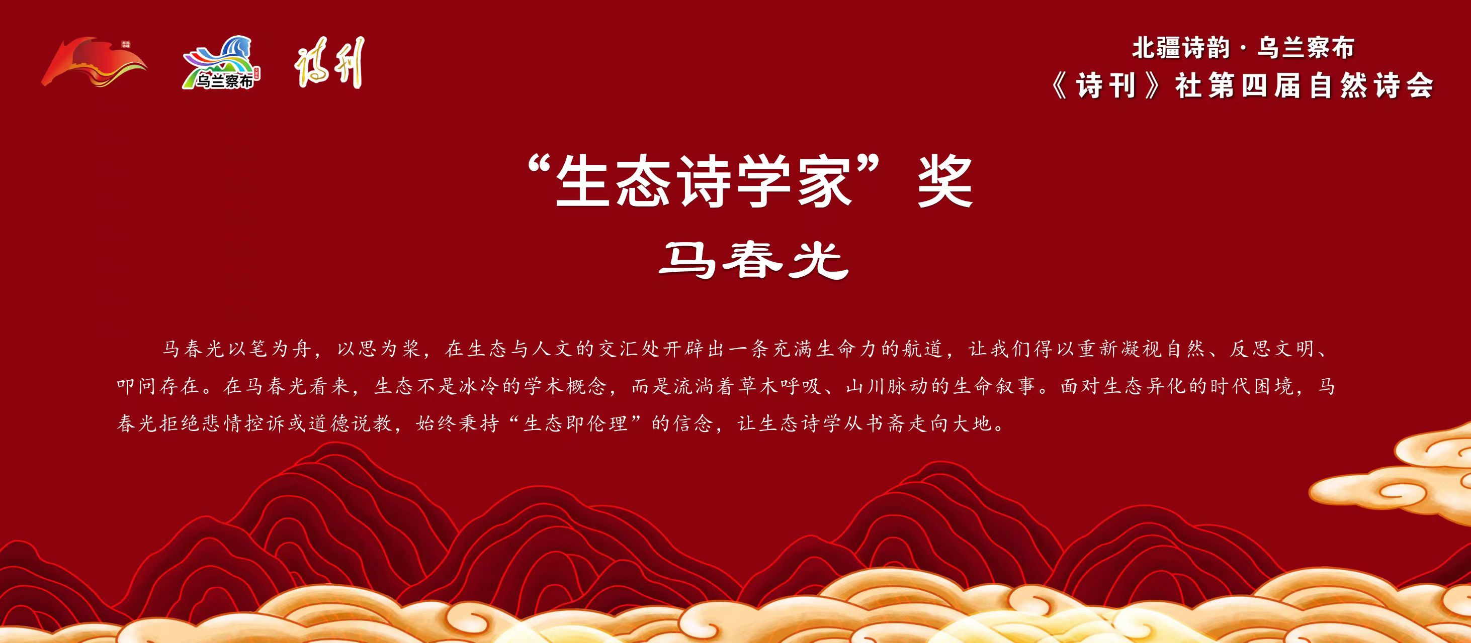 8月2日,由《诗刊》社、中共乌兰察布市委员会宣传部主办,中国诗歌网、内蒙古诗歌学会、乌兰察布市文学艺术界联合会、乌兰察布市融媒体中心、中共察哈尔右翼前旗委员会宣传部、中共察哈尔右翼中旗委员会宣传部承办的“北疆诗韵·乌兰察布:《诗刊》社第四届自然诗会”在内蒙古乌兰察布市隆重开幕。诗人秦立彦、诗学家马春光分别获颁“自然诗人奖”“生态诗学家奖”。现编发颁奖词与获奖感言,以飨读者。