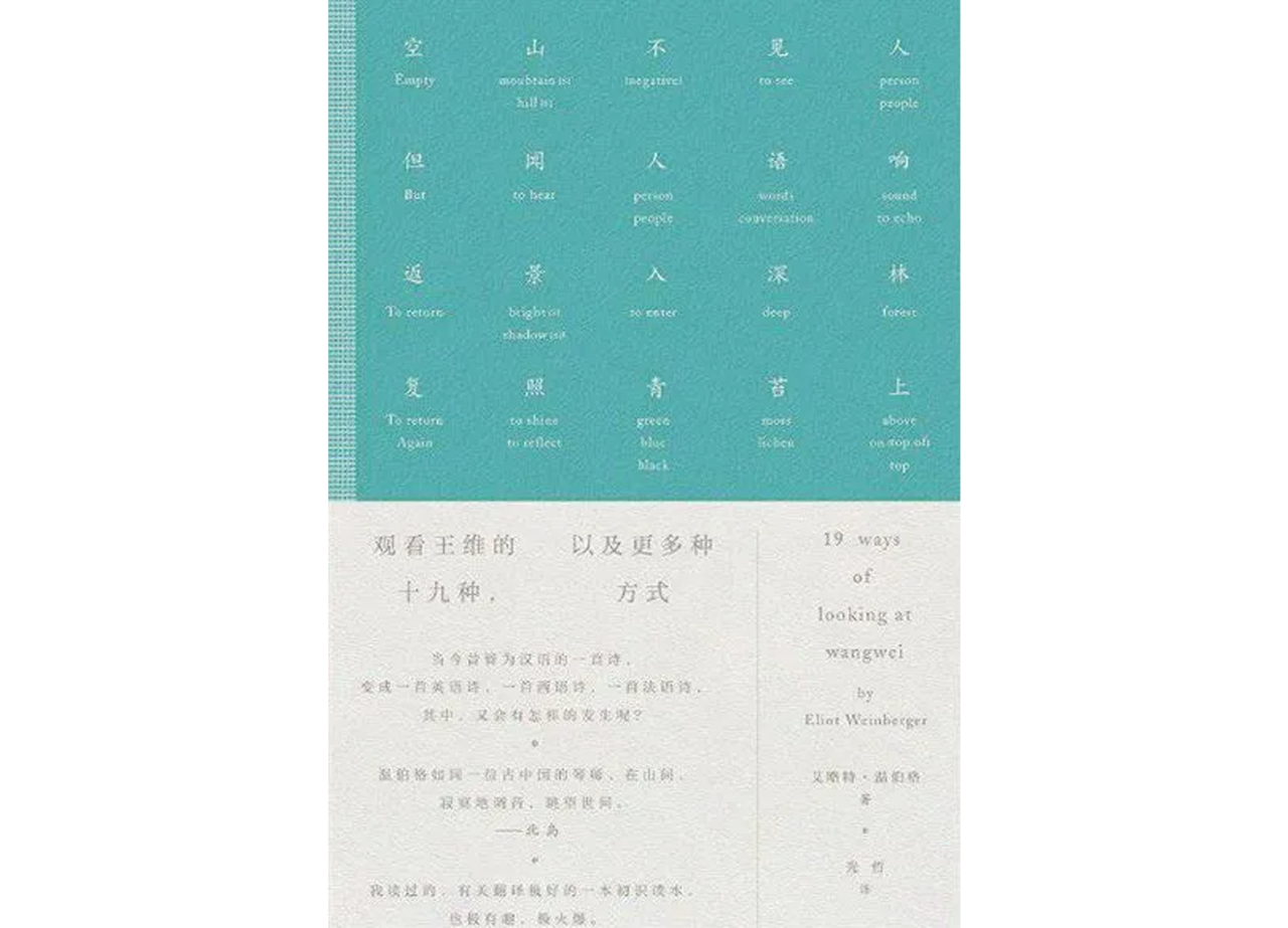 艾略特像一位隐蔽的文学领袖。他编选的《1950年后的美国诗歌:革新者和局外人》(American Poetry Since 1950: Innovators and Outsiders)一书帮助我们整理和认识了美国诗歌的当下。他是西班牙语文学的行家,他同时也对古今中国诗歌保持着一种特殊的兴趣。温伯格的著作《观看王维的十九种方式》(Nineteen Ways of Looking at Wang Wei),获墨西哥诗人、诺贝尔文学奖得主奥克塔维奥·帕斯(Octavio Paz)评析,已成为英语国家许多大学的中国文学经典教材或必读书。他也是《新方向版中国古诗选》(The New Directions Anthology of Classical Chinese Poetry)的编者。因为这本书,我才知道,原来美国大诗人威廉·卡洛斯·威廉斯(William Carlos Williams)也翻译过卓文君、贺知章、孟浩然、王维、王昌龄、李煜等人的赋、诗、词。