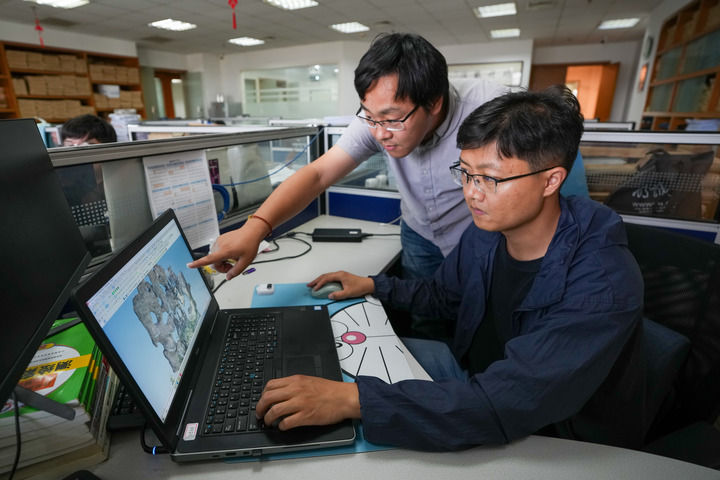 工作人员通过软件处理苏州环秀山庄的数字场景扫描数据(2025年5月19日摄)。新华社记者 李博 摄