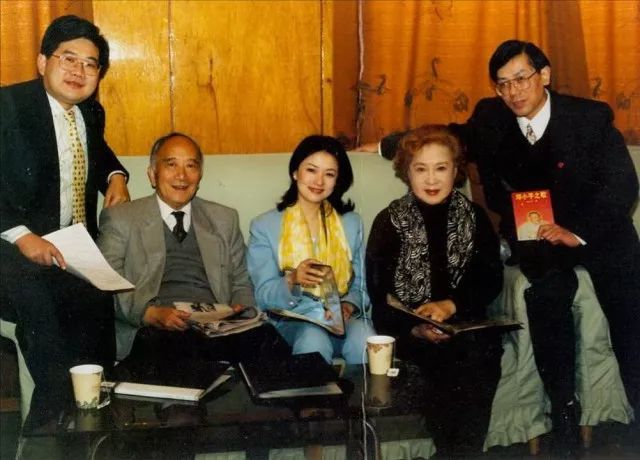 1997年4月进京演出:(左起)曹可凡、孙道临、袁鸣、秦怡、桂兴华
