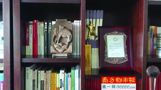 2 .书架上除了书,还有主人荣获的华语文学传媒大奖奖杯。