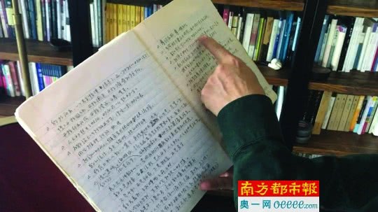 欧阳江河展示他的读书笔记本,这样的本子有17本之多。