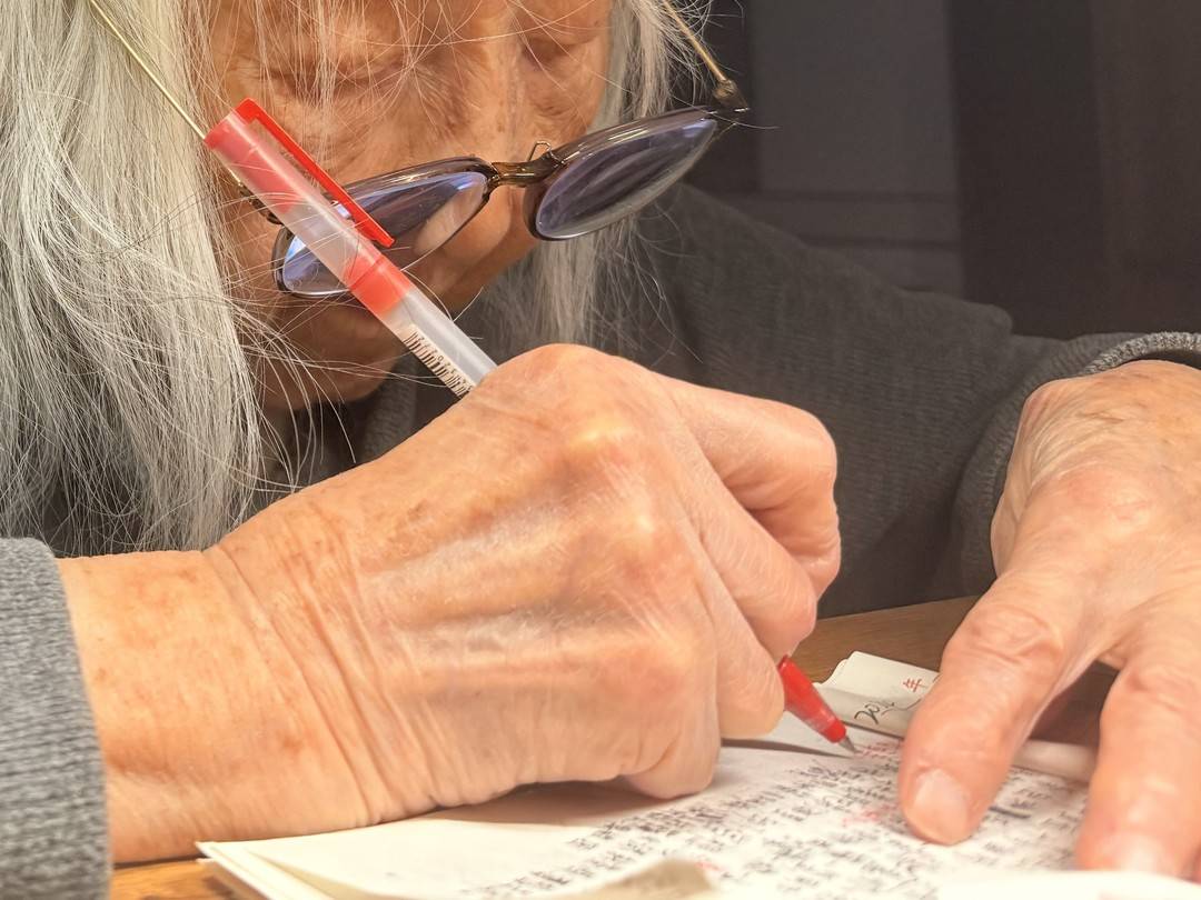 灰娃向封面新闻记者展示她的笔记(摄影:雷蕴含)