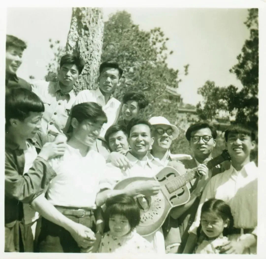 (怀抱吉他的青年为谢冕)