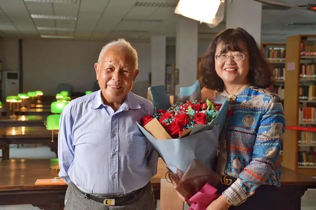 图九:采访结束,谢冕与邵燕君合影