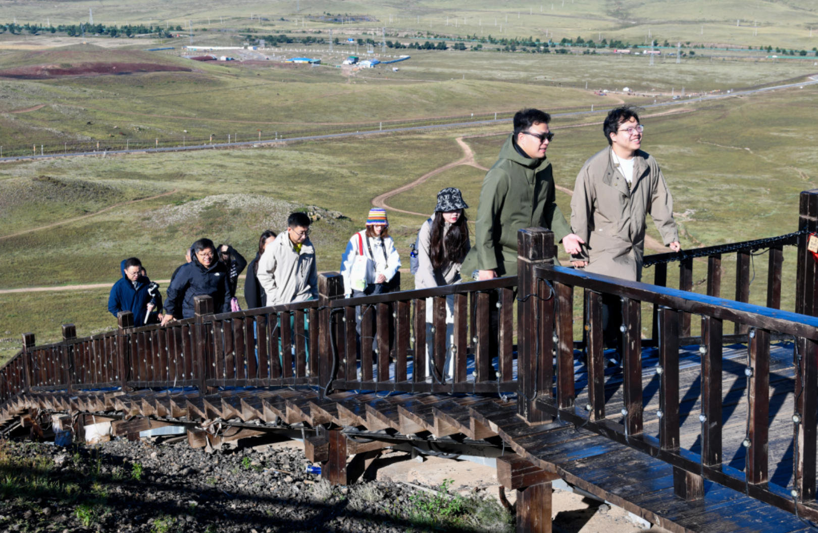 清晨的乌兰哈达火山群迎来了一批特殊的访客。青年诗人们踏着晨曦登上火山,在草原与火山的环抱中展开了一场关于爱情、自然与生命的诗意对话。青年诗人刘子睿在6号火山顶朗诵作品《当我们在一只鸽子的腹中飞过夜晚》,将爱情的微妙与宇宙的浩瀚交织于诗句之中;诗人马文秀坐在火山岩上感受大地脉搏,她感慨:“火山本身的永恒与激情与诗歌表达的情感张力不不而合。”《诗刊》社融媒体中心主任金石开表示,希望诗人用才华将乌兰察布写进诗里,让美景永驻诗行。